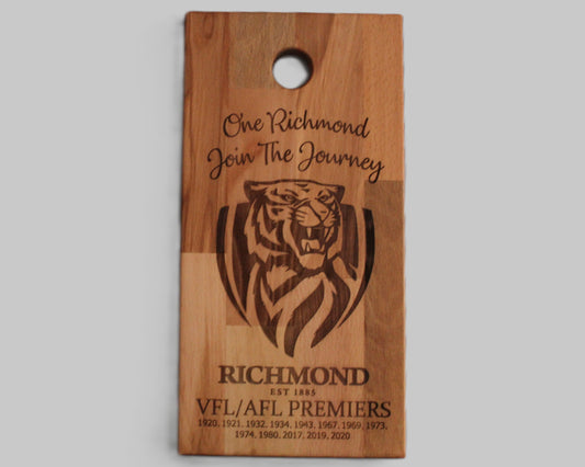 Show your team pride with our team engraved serving and chopping boards. Each wooden board is laser-engraved with your favourite team logo — perfect for game day, BBQs, or gifts.